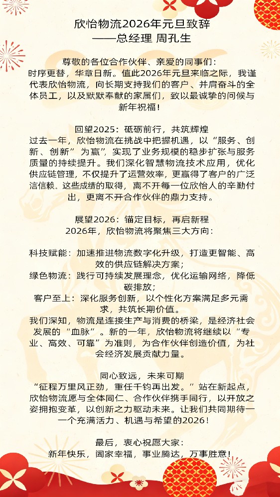 圣诞的灯光点亮城市的街巷,也照亮了物流人奔波的身影。在这个满载喜悦与期盼的节日里,欣怡物流向每一位客户,致以最热烈的节日问候与最衷心的感谢!是您的选择与托付,让